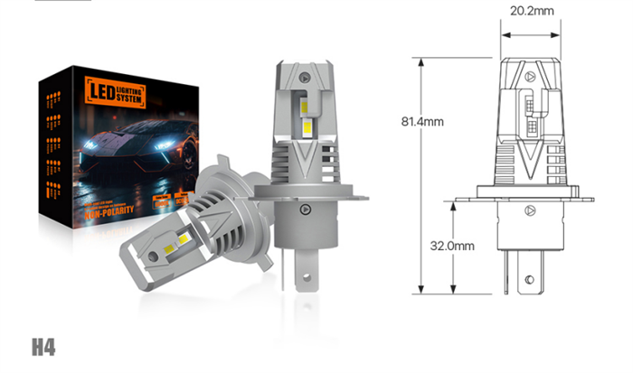 H4 Led kit (2 stk) Ultra Compact design  - klar til montering i den eksisterende sokkel i forlygten.