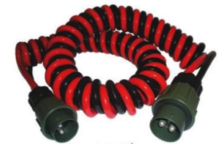 2 polet NATO spiralkabel i sort/rød af polyurethan med en udvendig spiraldiameter på 70 mmNato Kabel med grønne Nato stik i hver ende.