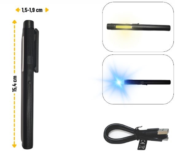 Pencillygten har  4 lysfunktioner - toplys, sidelys og UV